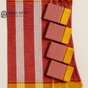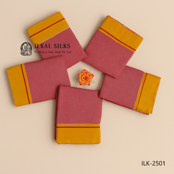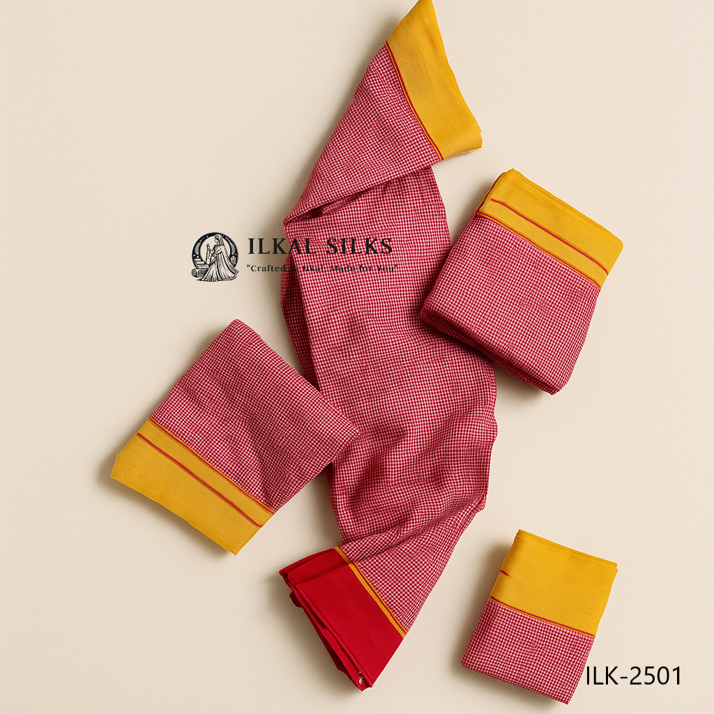 This beautiful Patteda Anchu saree is crafted from high-quality cotton, offering comfort, breathability, and elegance in one piece. The Red color Checkered body is paired with a traditional Ilkal cotton border adding a striking contrast. The elegant contrast pallu brings a classic Ilkal charm, making it perfect for both traditional and contemporary wear. At 6.2 meters in length, it provides ample fabric for comfortable draping and pleating.