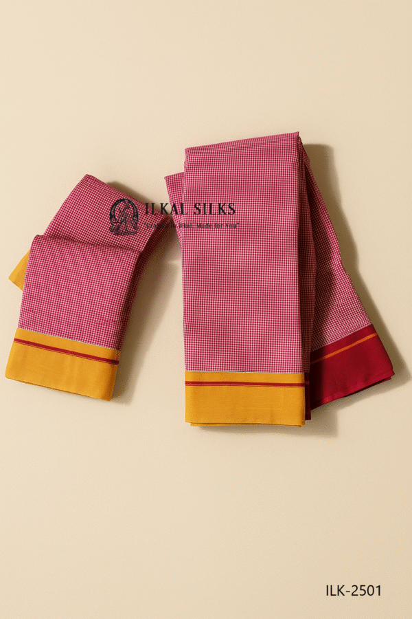 Handloom from pure cotton in North Karnataka, this eco-friendly saree pairs a timeless checkered body with a vibrant plain border. Soft, durable, and perfect for everyday elegance. Free delivery & 7-day easy returns.